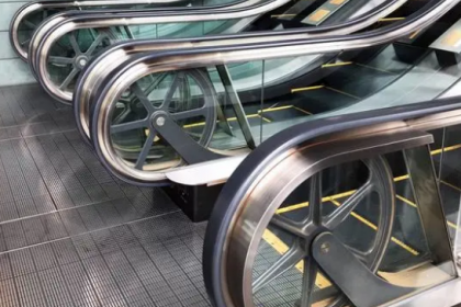 自动扶梯由梯路(变型的板式输送机)和两旁的扶手(变形的带式输送机)组成。其主要部件有梯级、牵引链条及链轮、导轨系统、主传动系统(包括电动机、减速装置、制动器及中间传动环节等)驱动主轴、梯路张紧装置、扶手系统、梳板、扶梯骨架和电气系统等。梯级在乘客入口处作水平运动(方便乘客登梯)以后逐渐形成阶梯;接近入口处阶梯逐渐消失,梯级再度作水平运动。这些运动都是由梯级主轮、辅轮分别沿不同的梯级导轨行走来实现的。
